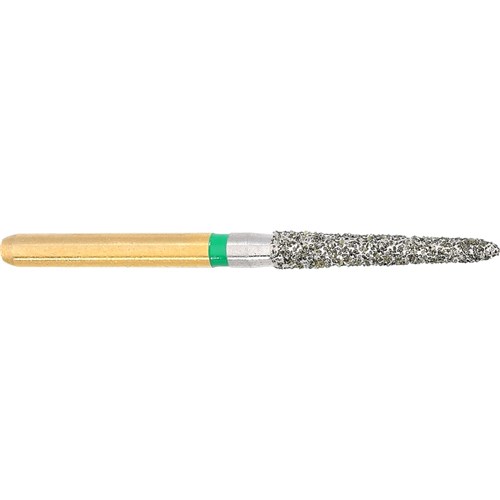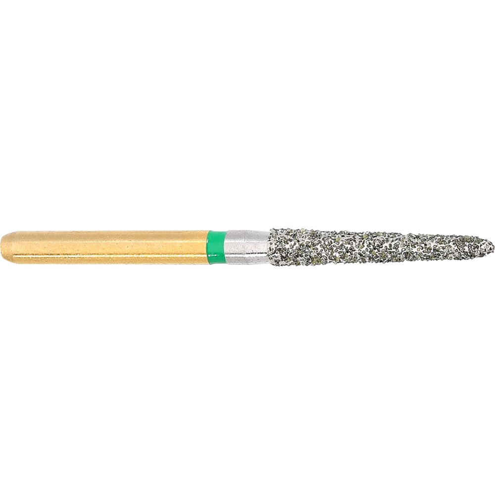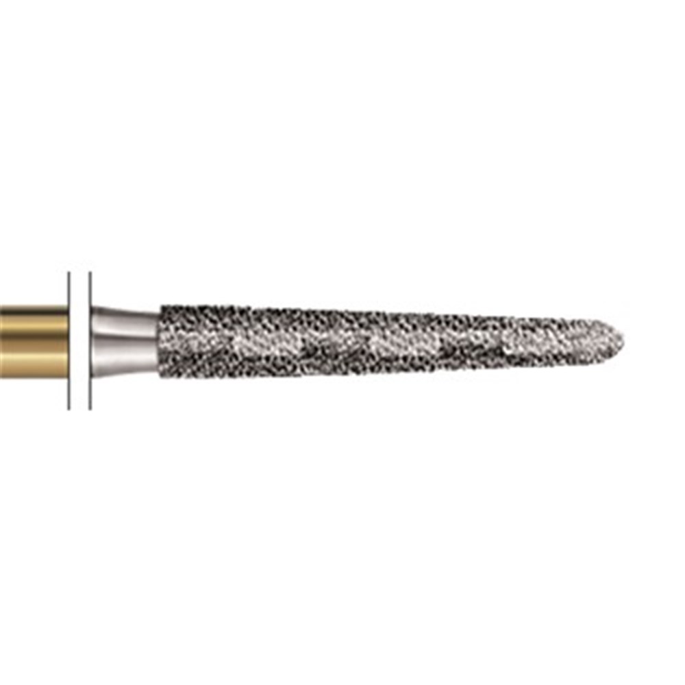 S-Diamond S6879K is a long tapered chamfer torpedo, coarse diamond used for crown preparation. FG 314 Size 018(1.8mm), with length 10.0mm and 2 degree angle. Matches H284K carbide finisher series.