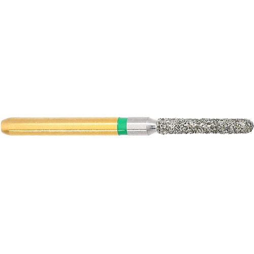 S-Diamond S6881 is a parallel chamfer rounded edge shaped coarse, friction grip diamond used for crown preparation. Head diameter 014 (1.4mm) and 8.0mm working length.