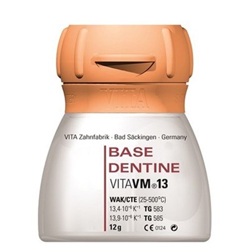 VITA VM 13 is a highly-esthetic, fine-structure feldspar ceramic that is perfectly adapted to the CTE value of conventional bonding alloys (approx. 13.8 – 15.2 µm/mK). Regardless of whether the conventional alloys are cast, milled or sintered. VITA VM 13 provides a genuine alternative to all-ceramics – and is right at home wherever the masking effect of a metal framework is required. The firing temperature (880°C, dentin firing) provides enormous processing reliability, particularly for alloys with a low solidus temperature (<1100°C). The main components are pure-grade potash and albite feldspar materials that offer brilliant shade effects as well as unbeatable flexural strength values. Thanks to its homogeneous, compact surface, VITA VM 13 supports outstanding grinding and polishing, particularly in situ. This ensures smooth and densely compact surface results.