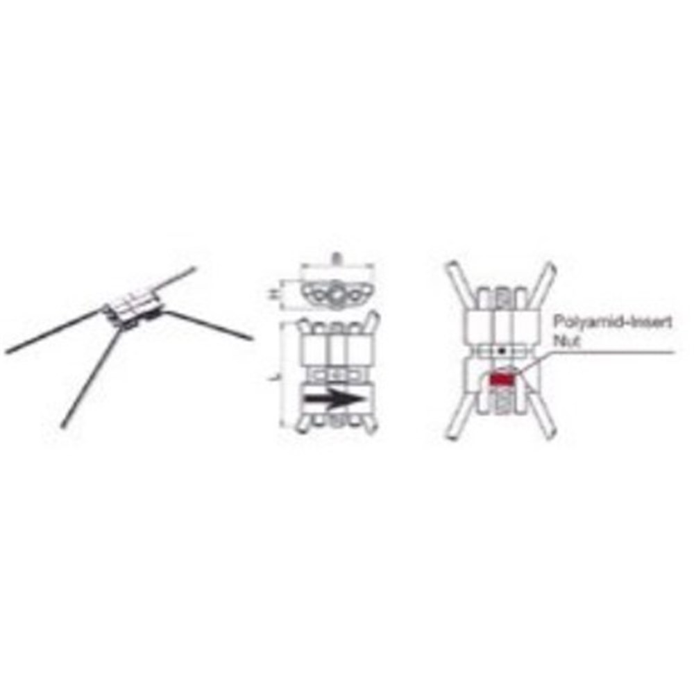 Palatal expansion screw with anatomically bent retention arms that can be easily soldered or welded to molar bands. The specially designed housing fits the palatal vault perfectly. An integrated Polyamid-Insert Nut prevents the screw from backing up. Laser marking for Torsional direction and expansion on housing. Vector 600 Expansion 11mm, 10.4B x 4.0H x 15L 1/10 Pieces