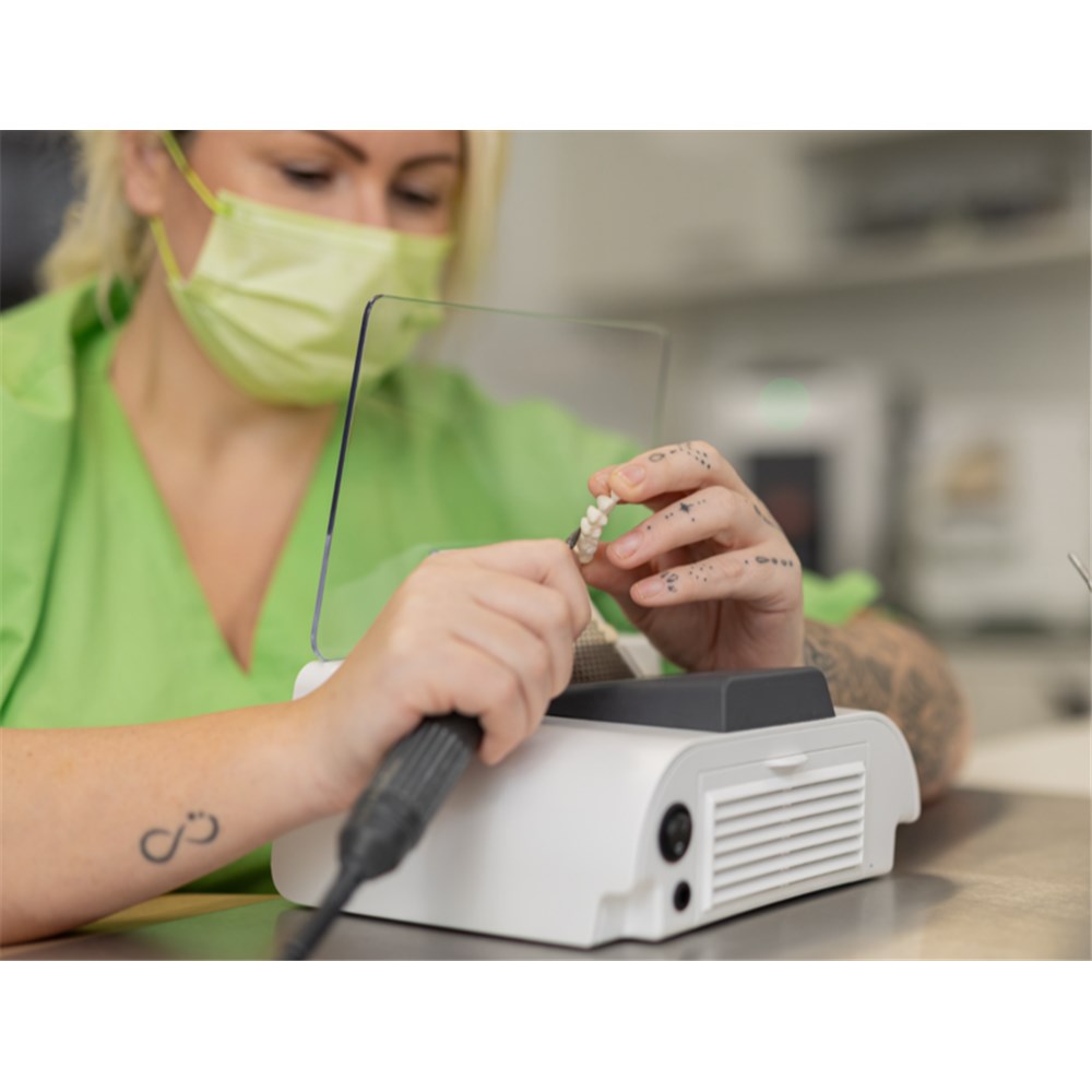 The powerful combination comprising SILENT compact and Dustex master plus is recommended for more demanding tasks such as finishing full dentures or removing large quantities of acrylic material. This offers maximum suction power and is ideally suited to routine, intensive applications.