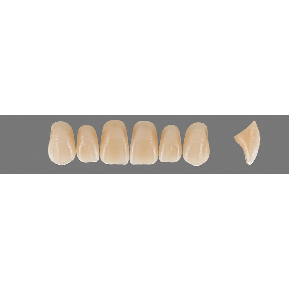 Lifelike, elaborate premium anterior teeth made of MRP composite.