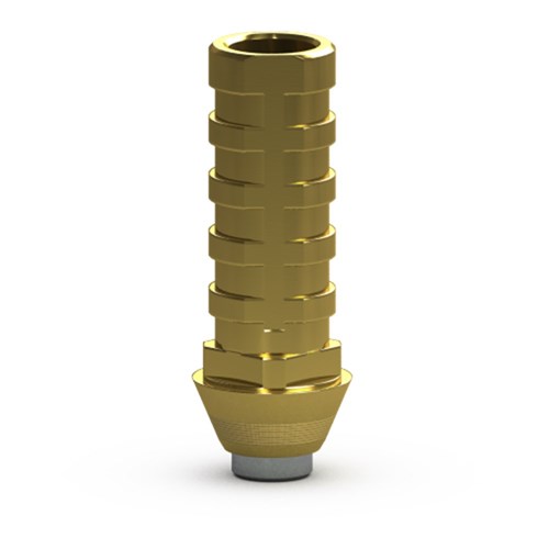 Use non-hexed for multiple-unit, screw retained, long term temporary restorations (>30 days). When a Laser-Lok component is used and temporarily removed for impression making or other restorative procedures, keep the removed Laser-Lok component in sterile saline until reinserting into the site. Packaged with an abutment screw (PXAS). Titanium Alloy for strength. TiN coated for esthetics. Final torque: 30 Ncm. Refer to the Prosthetic Technique Manual (L02015) for appropriate handling techniques.