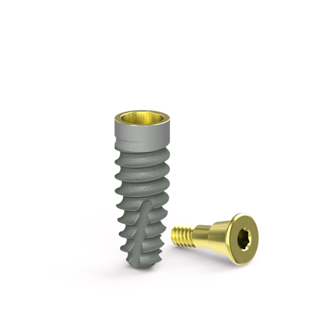 • Flat implant shoulder designed to reduce vertical discrepancy by allowing restorative components to sit on the implant shoulder preserving the conical connection for final abutments