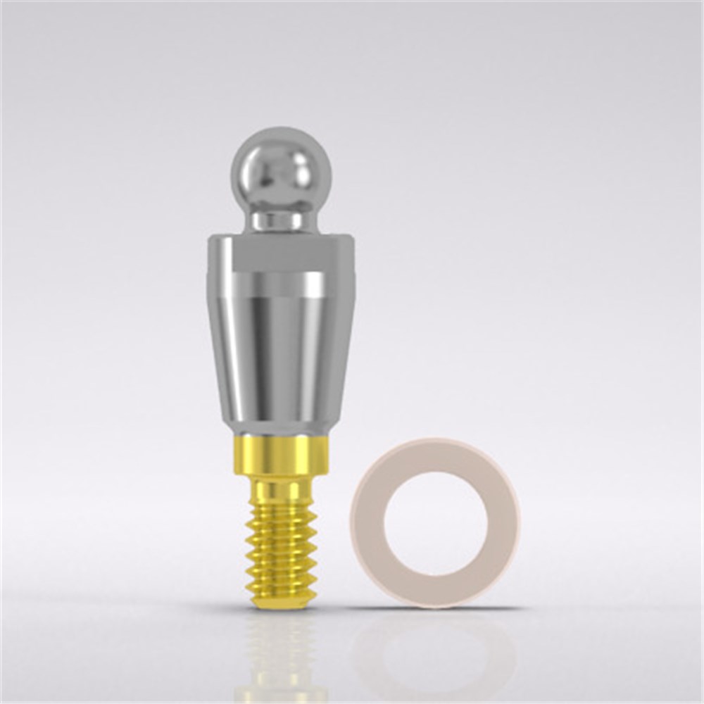 CONELOGĀ® Ball abutment, male part, incl. stabilizing ring, material: titanium alloy.