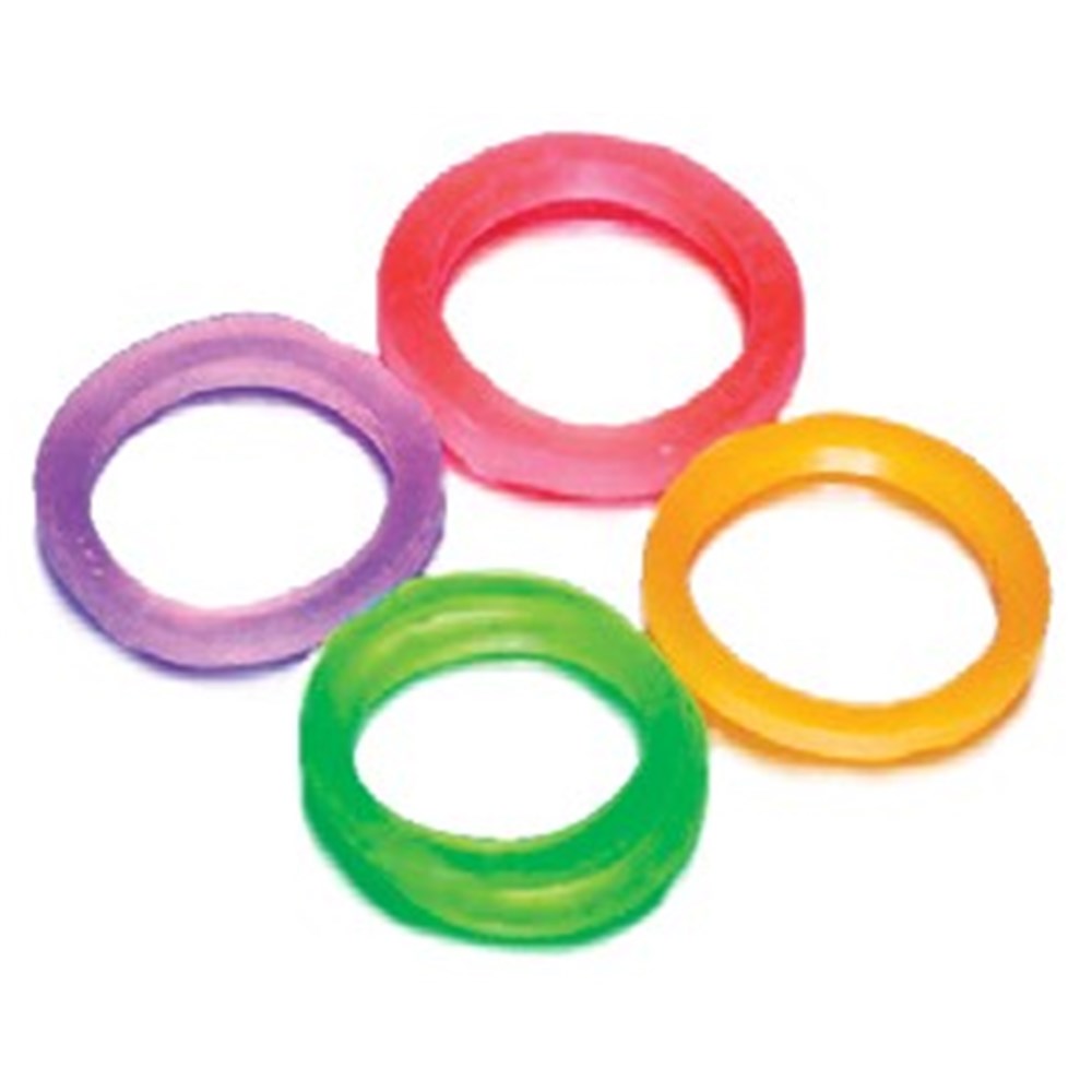1/4"  4 1/2 oz - Comes in four bright colours and are made from surgical latex which has been coloured.  They are available in colour coded bags to identify size.
