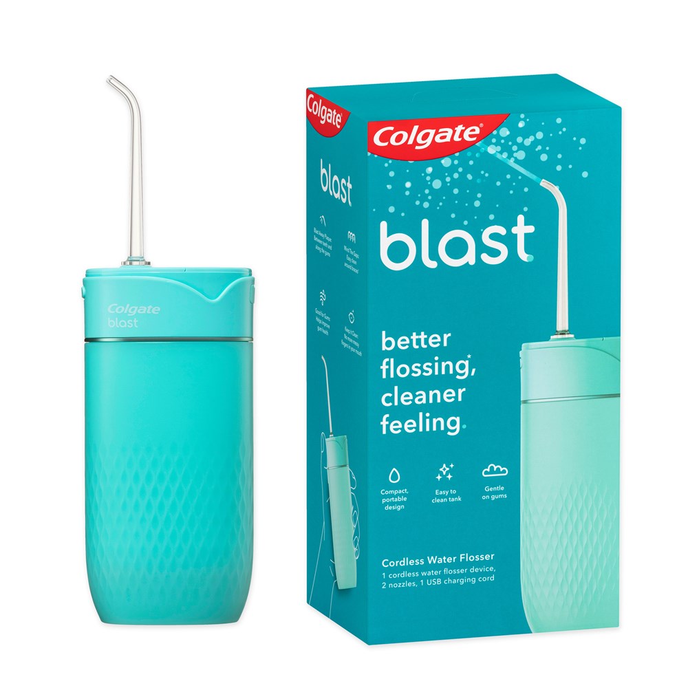 Colgate Blast Cordless Water Flosser provides better flossing* for a cleaner feeling**. It gives you the easy clean for all those tricky in-betweens in your mouth and along your gums.