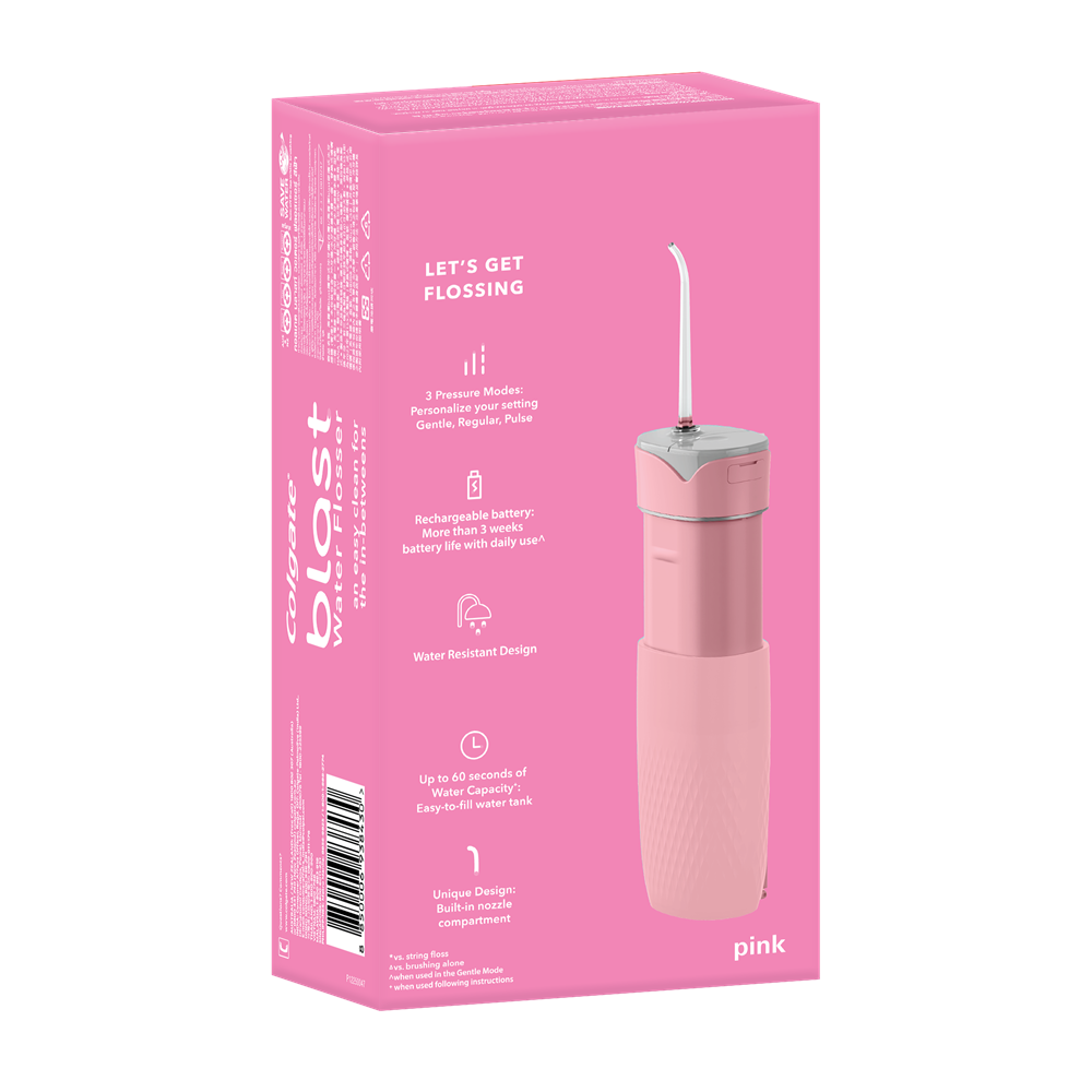 Colgate Blast Cordless Water Flosser provides better flossing* for a cleaner feeling**.