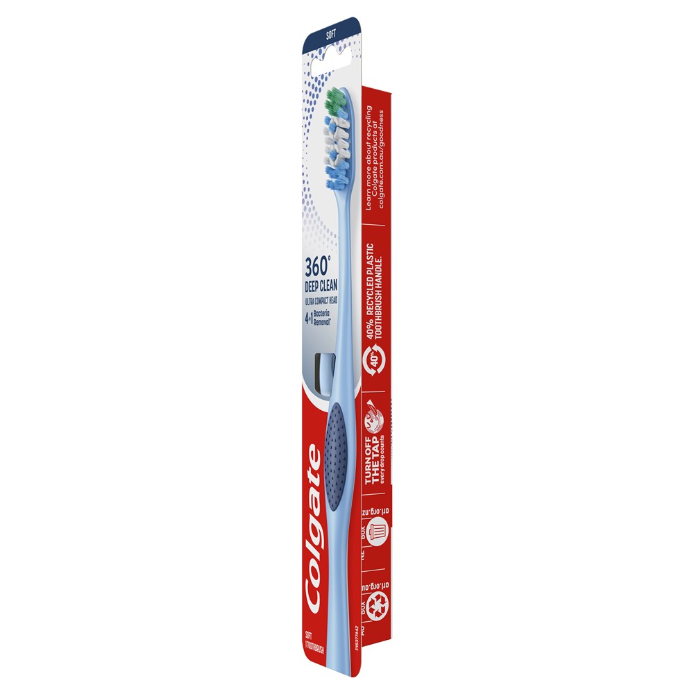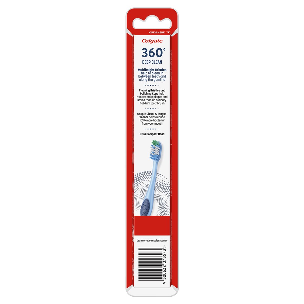 Colgate 360° Deep Clean Manual Toothbrush delivers 4 in 1 bacteria removal*; with ultra compact head.