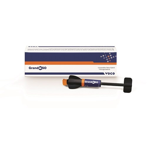 GrandioSO, the new, universal nano hybrid restorative for all classes of cavity meets the highest demands for restorations in anterior and posterior regions. GrandioSO is suitable for class I to V restorations, reconstruction of traumatically injured anterior teeth, interlocking and splinting of loosened teeth, corrections of shape and shade to enhance aesthetic appearance, core build-up for crowns, and the fabrication of composite inlays. Advantages